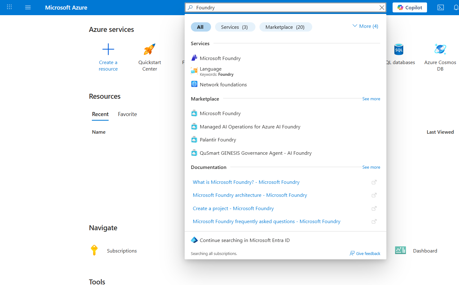 2. Type “Foundry” and select Microsoft Foundry from the results.