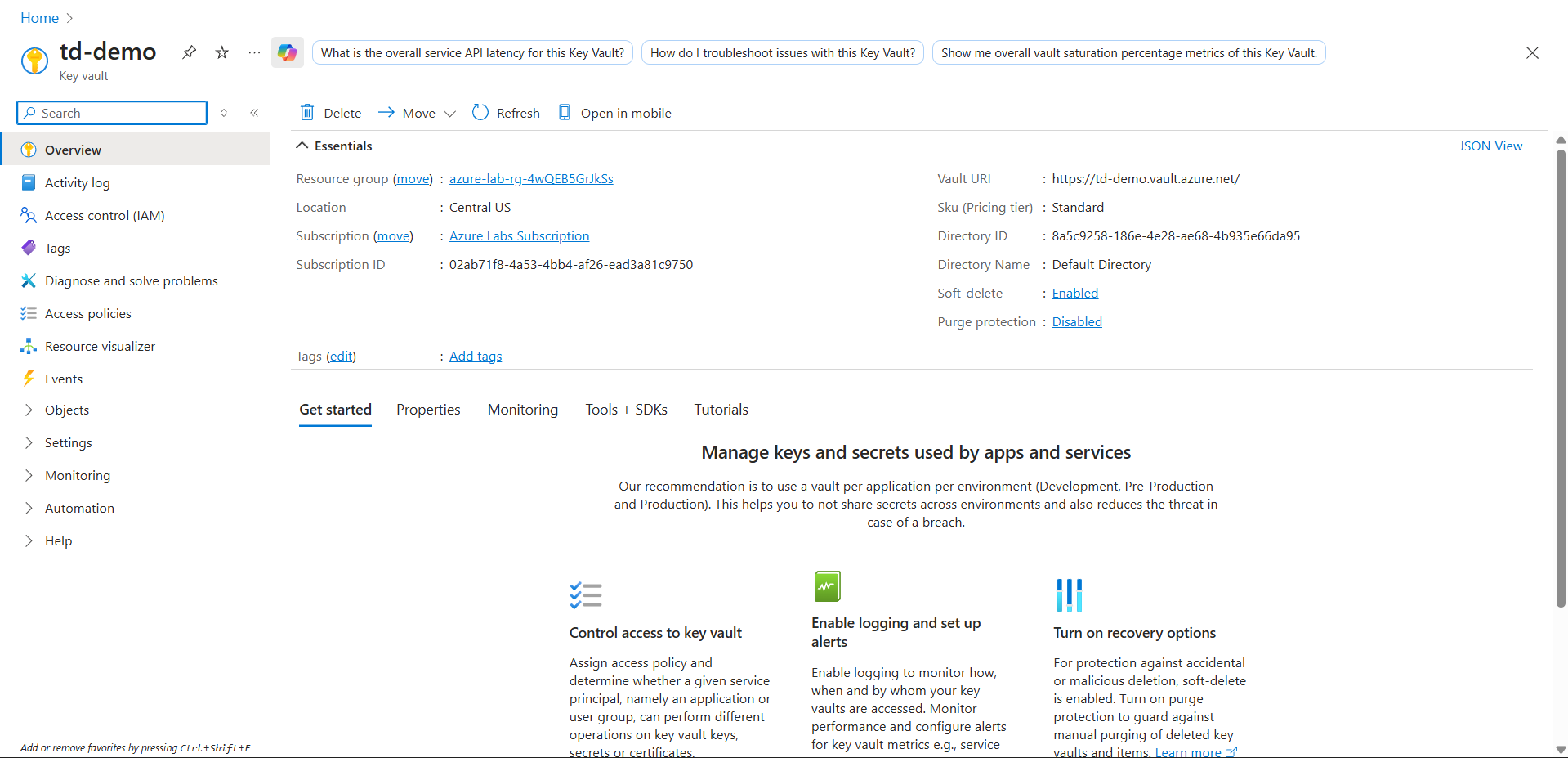 That’s basically it! You’ve completed the guided lab for provisioning an Azure Key Vault—your vault is now securely deployed and ready for use.