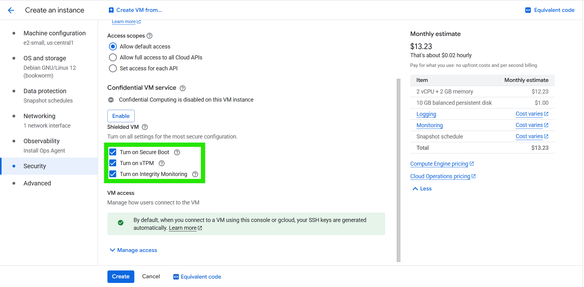 - Create a Shielded VM instance.