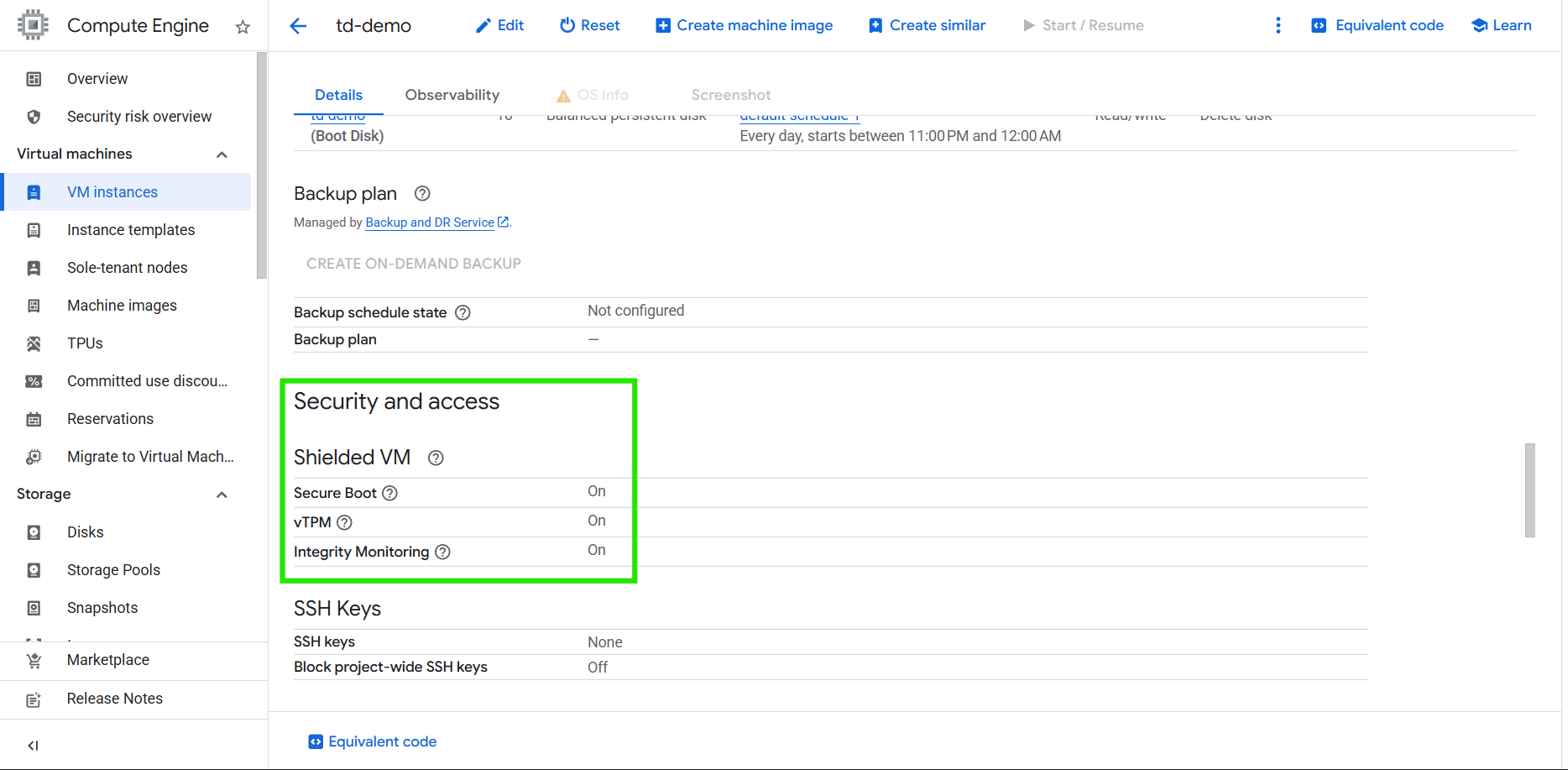 - Verify that Secure Boot, vTPM, and Integrity Monitoring are enabled.
