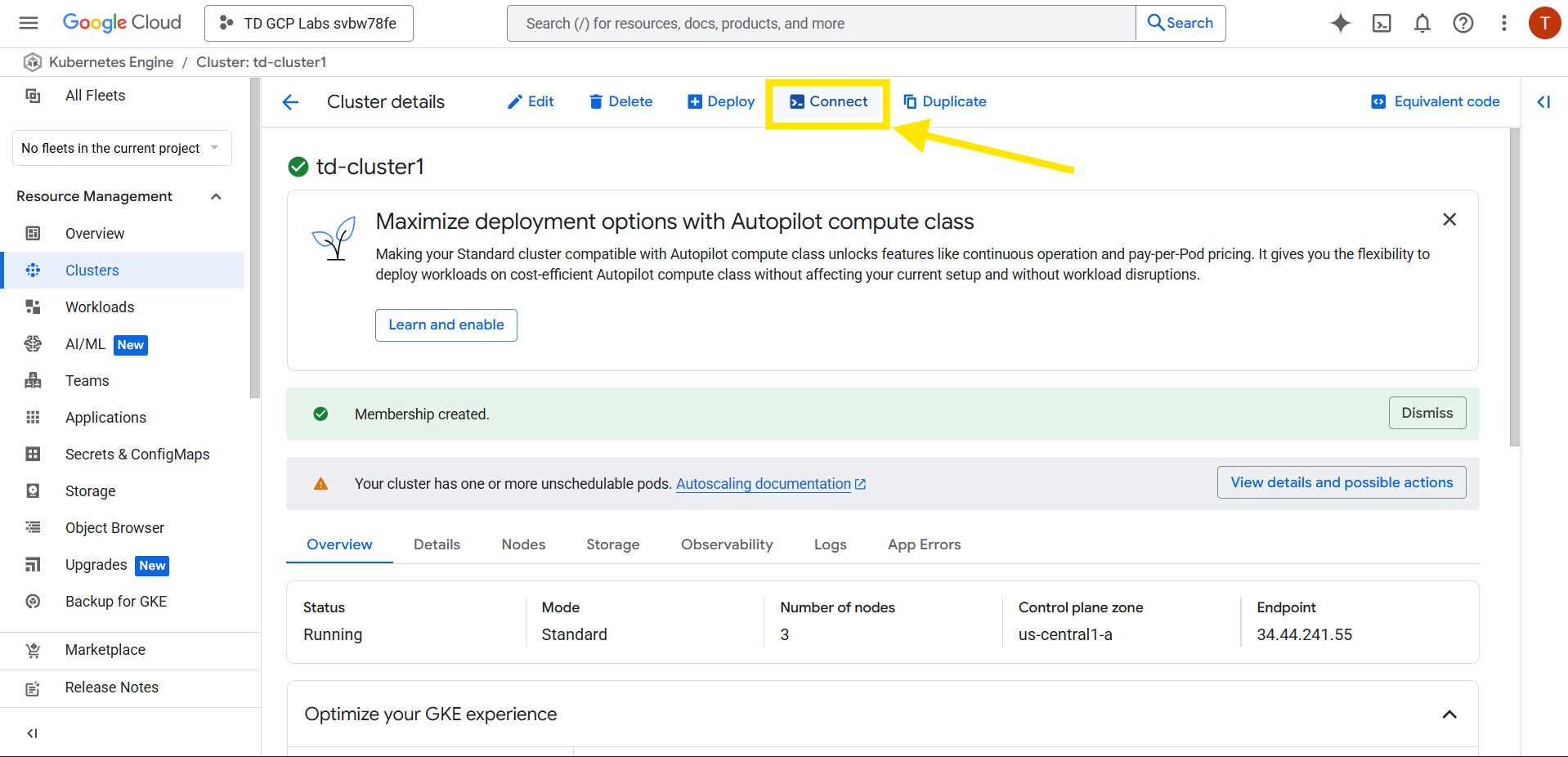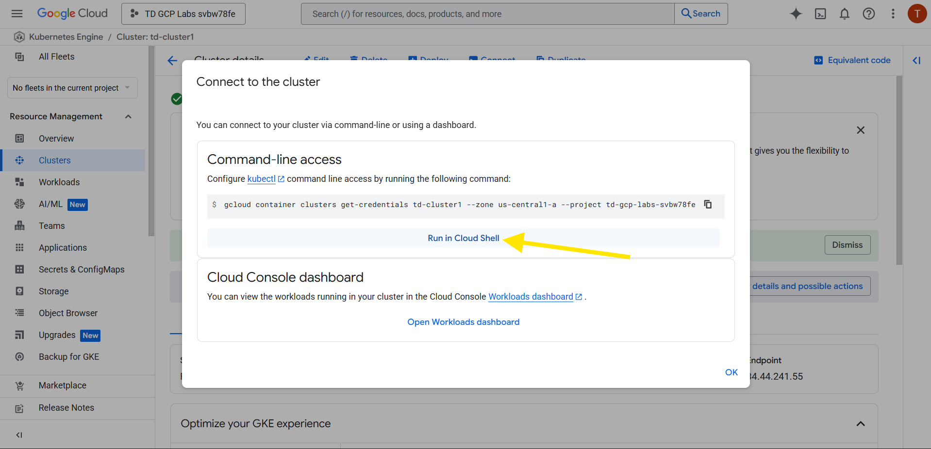 In this guided lab, you’ll learn how to connect to an existing GKE cluster using the Google Cloud Console and verify that the connection is successful.