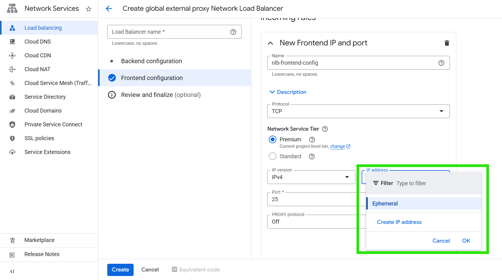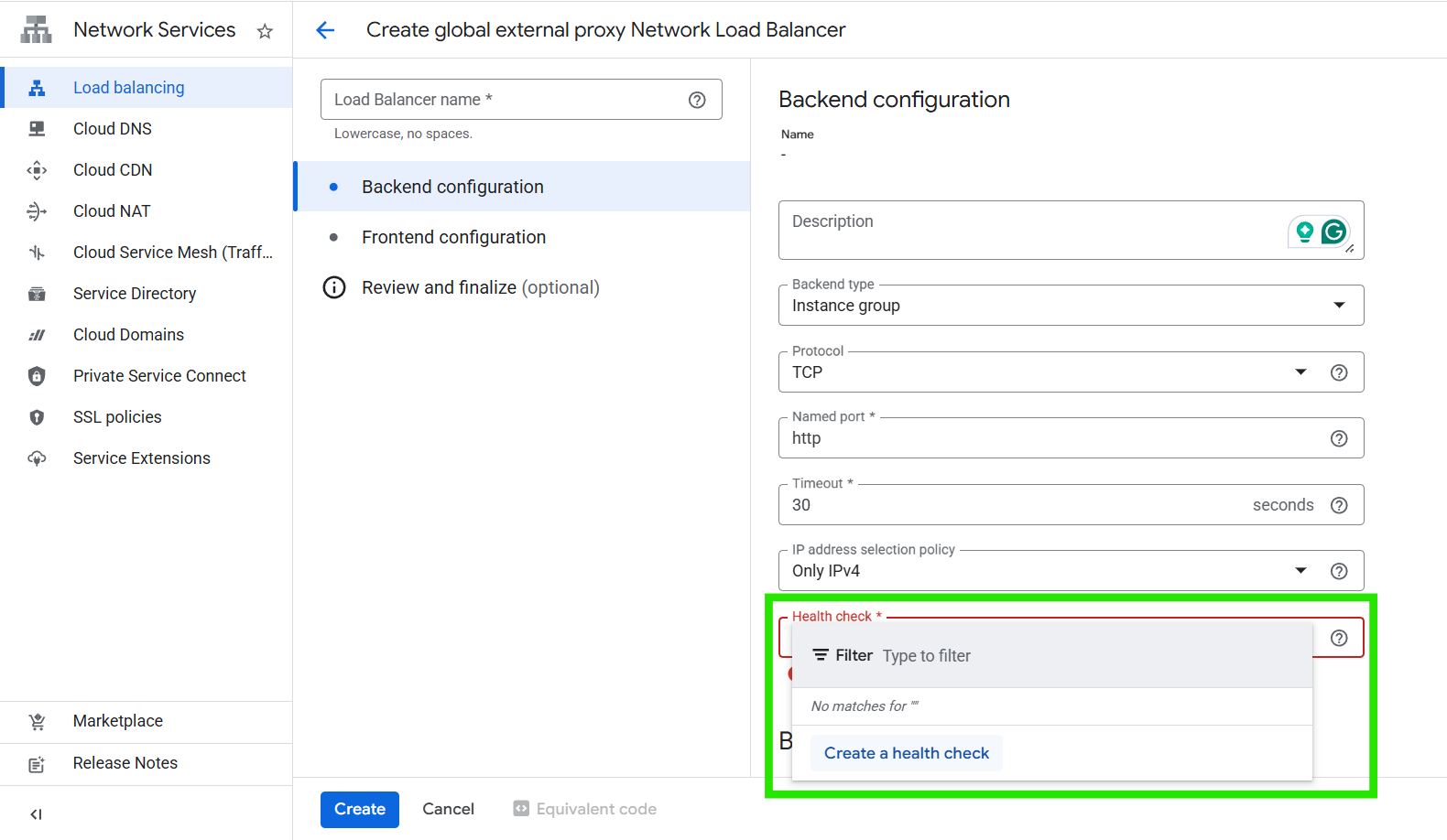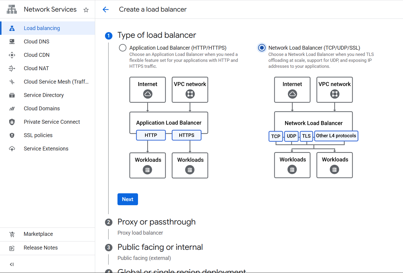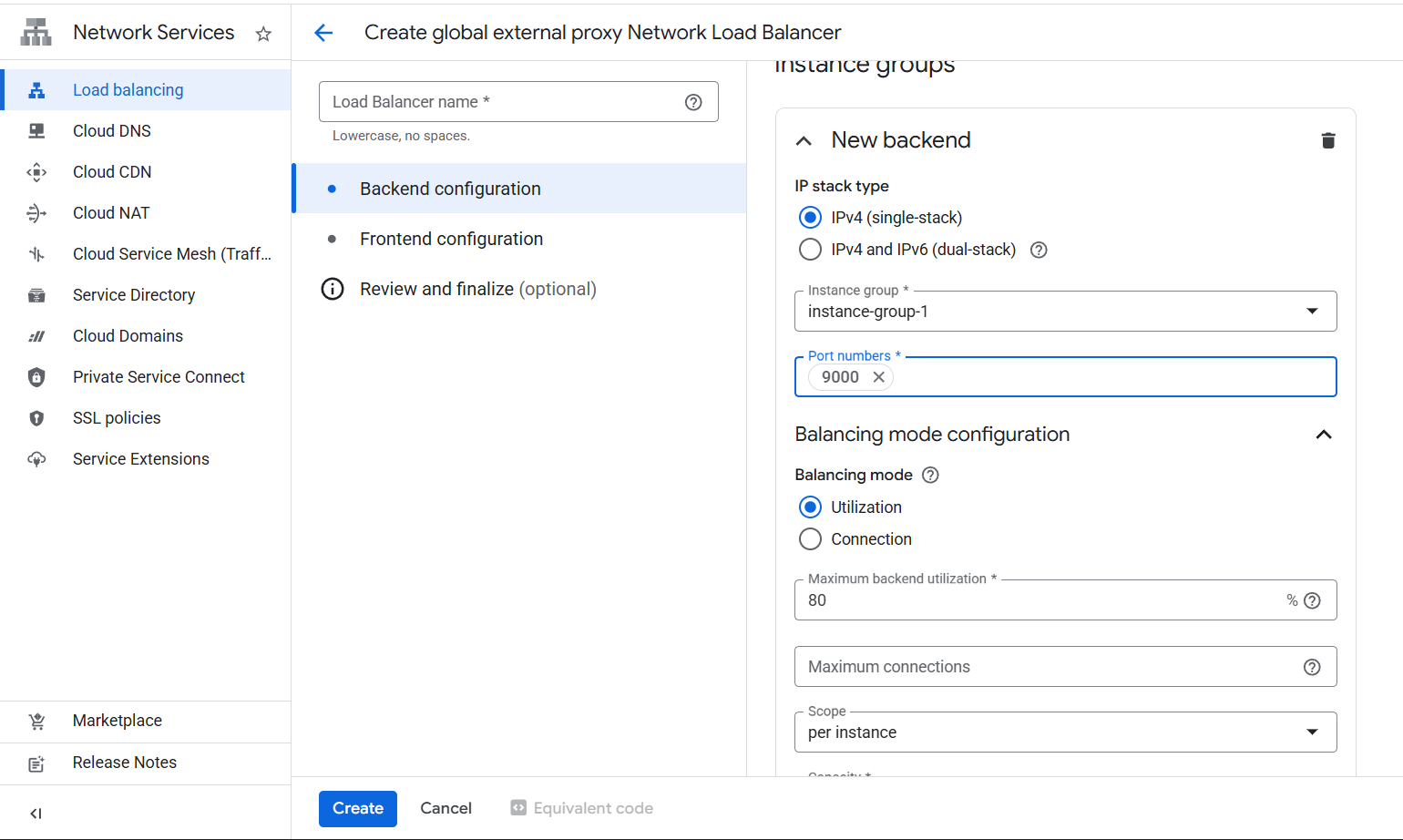 1. Navigate to Network services → Load balancing → Create Load Balancer.