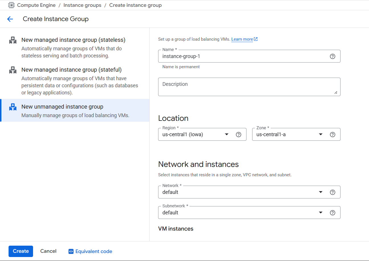 1. Go to Compute Engine → Instance groups → Create Instance Group.