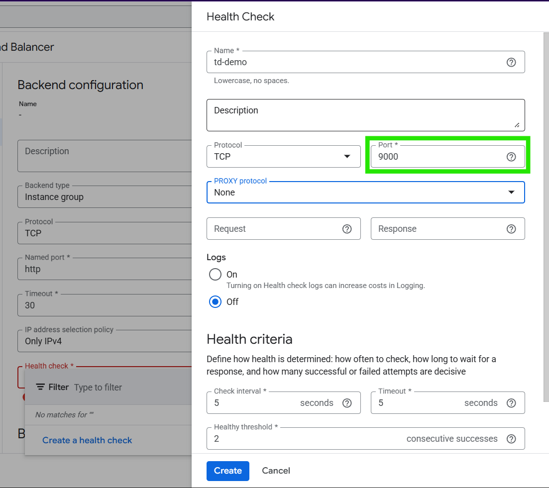 - Create a firewall rule to allow TCP traffic on port 9000.