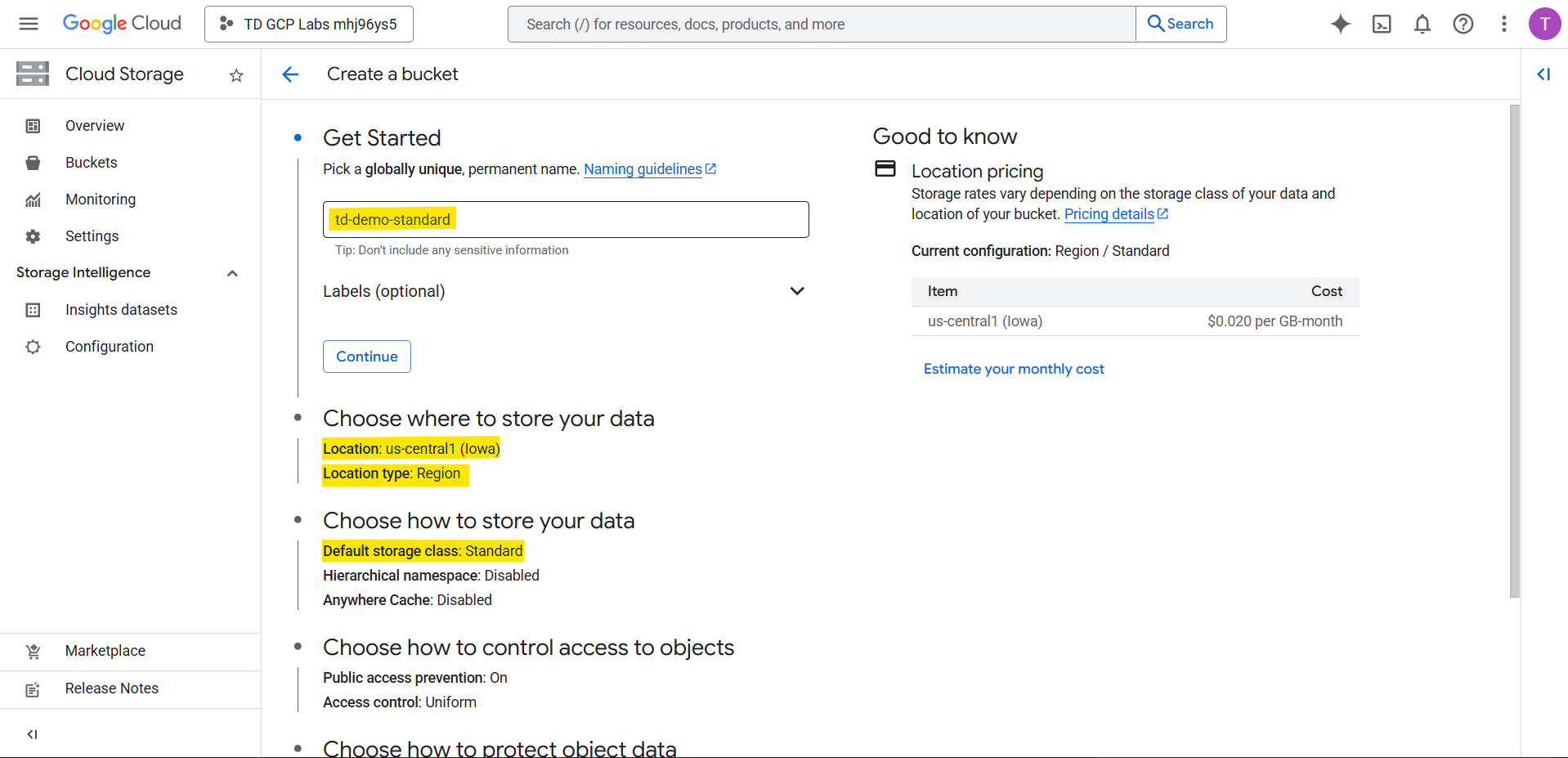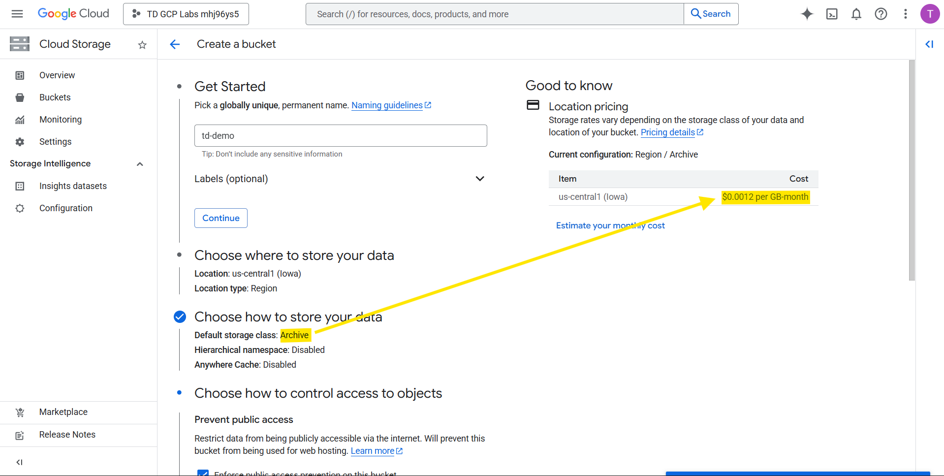 Once done, click Create. Then tick the “Enforce public access prevention on this bucket“.