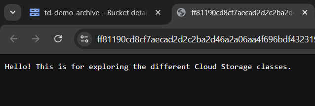 Note: Retrieval from Coldline and Archive may not feel slower with a small .txt file, but for larger files in a real environment, the download speed and latency would be more noticeable.
