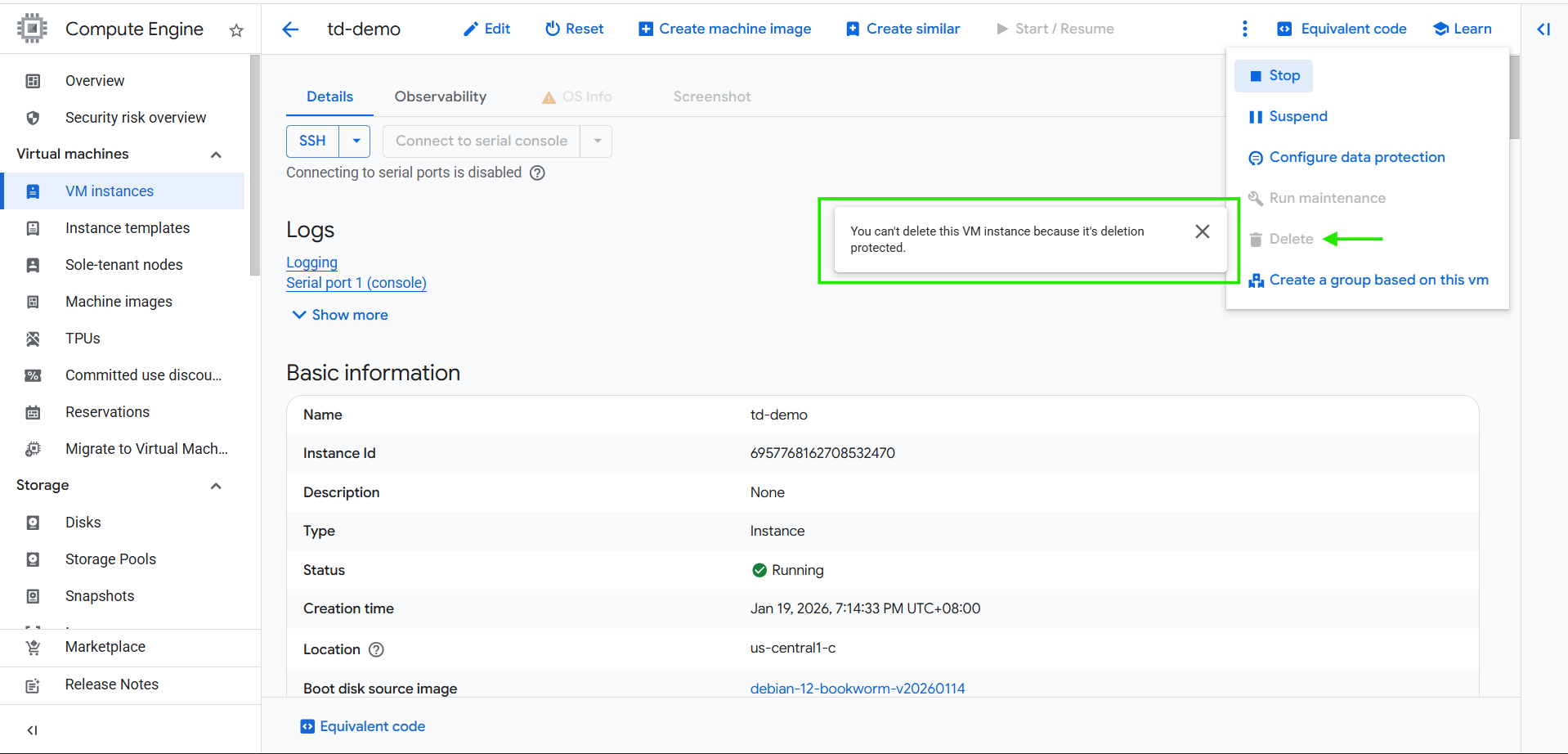 - Learn how to enable deletion protection on a VM instance.