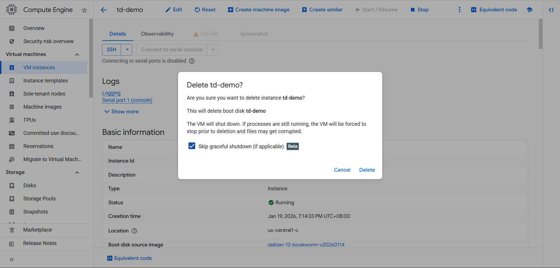 3. This time, the VM will be successfully deleted.