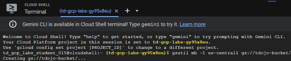 Congratulations! You’ve successfully created and managed a Cloud Storage bucket, uploaded a file, read it directly from the bucket, and copied it to your Cloud Shell environment. This guided lab helps you understand how to interact with Cloud Storage using SSH commands, manage objects, and perform basic file operations without relying on the web console. You can use these same concepts to automate storage workflows, integrate Cloud Storage with scripts or applications, and in future guided labs, you’ll explore more advanced object management and data processing techniques.