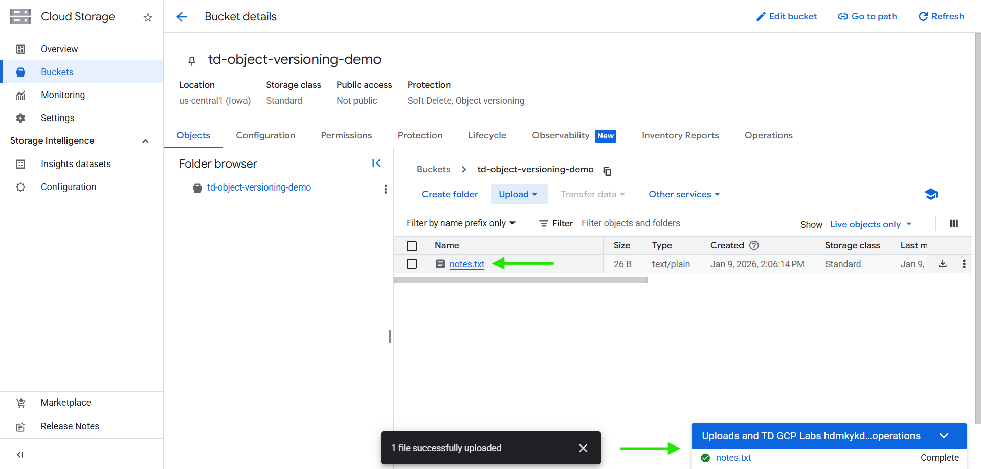 2. Upload notes.txt to the bucket.