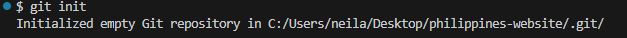 4. Open a terminal in the philippines-website folder and run the following commands to stage, commit, and push the updated file to GitHub: