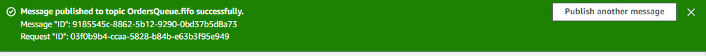 4. After publishing, the console will successfully display a message with a published confirmation. Since SNS doesn’t store messages, you won’t see a section for viewing published messages, but they are delivered to subscribers immediately (if there are any).