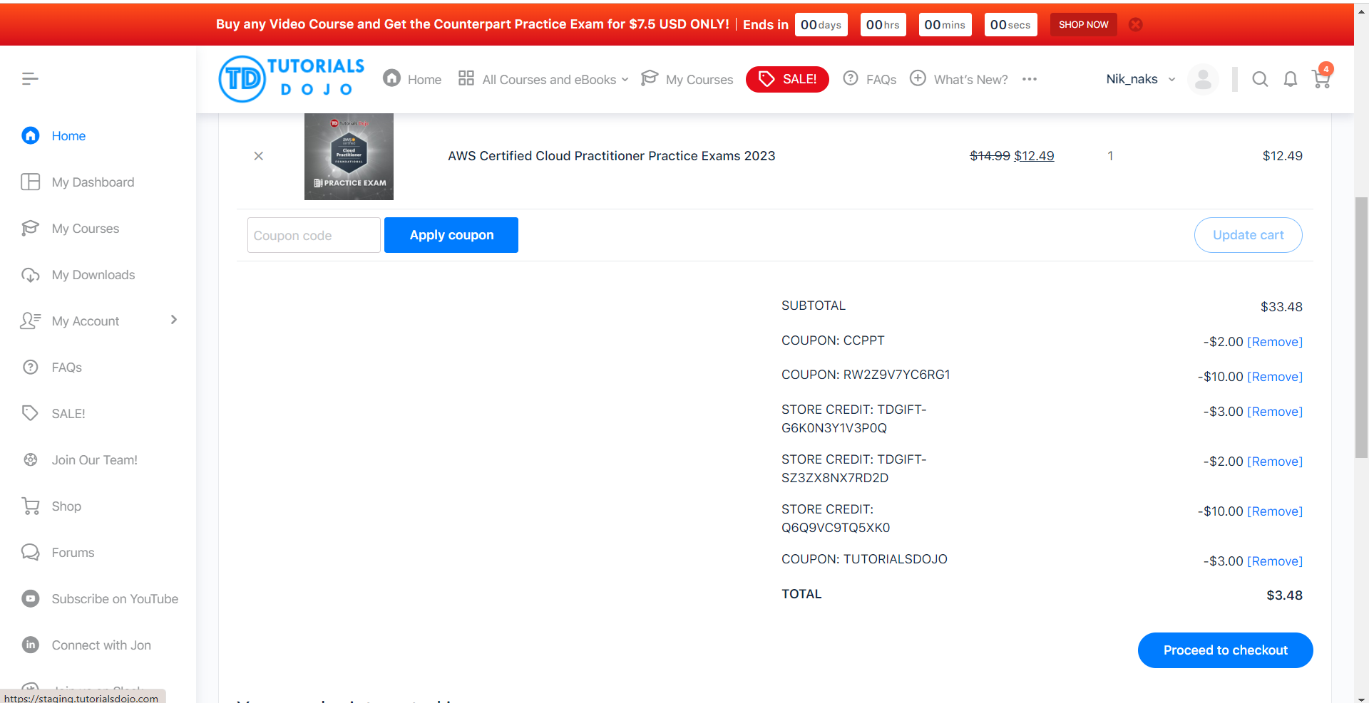 If you have a valid coupon code, enter it in the provided field or if you have store credits available in your account, just simply select the available credit/coupon and click Proceed to Checkout.