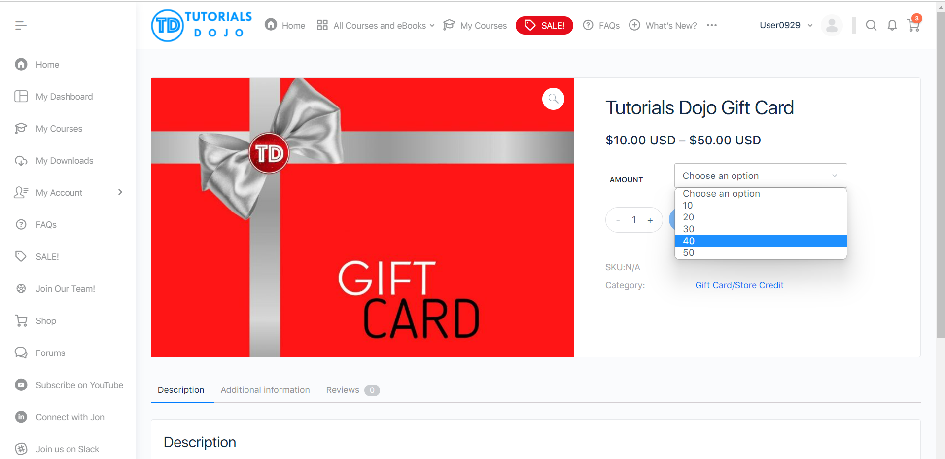Select the Gift Card/Store Credit amount then add it to your cart. Once done, click on the Cart button located at the upper right corner of the screen to review your cart.