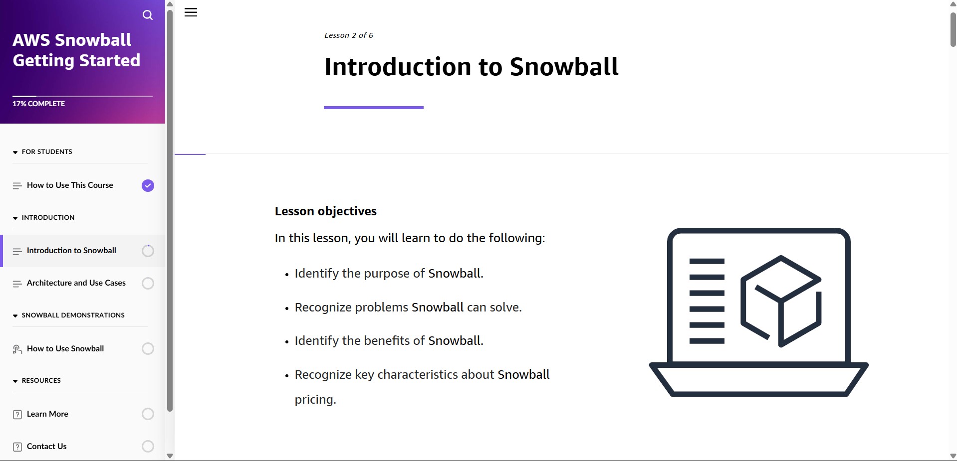 - Recognize the relationship between Snowball and other components of the AWS Cloud