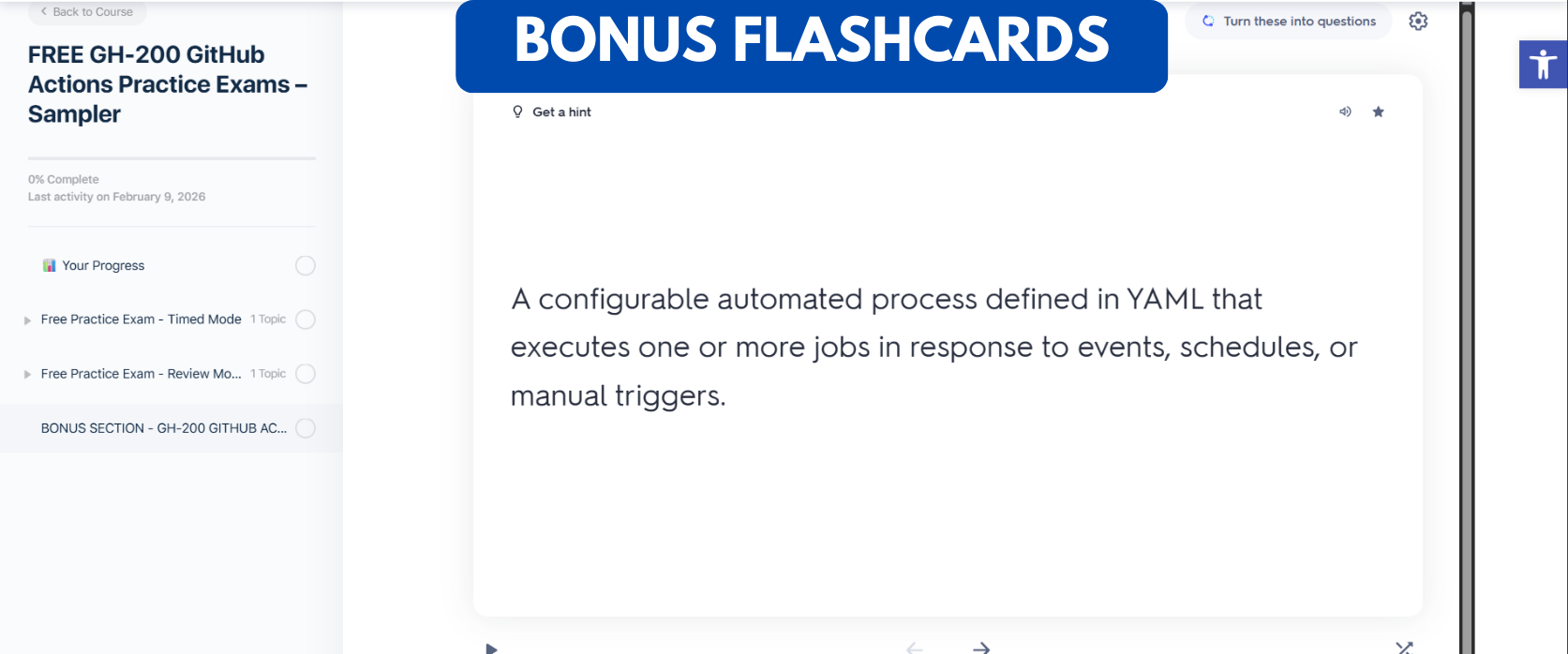 GH-200: GitHub Actions Practice Exams — featuring 140+ high-quality exam-style questions, multiple training modes, and extra flashcards to ensure comprehensive readiness for the GH-200 certification.