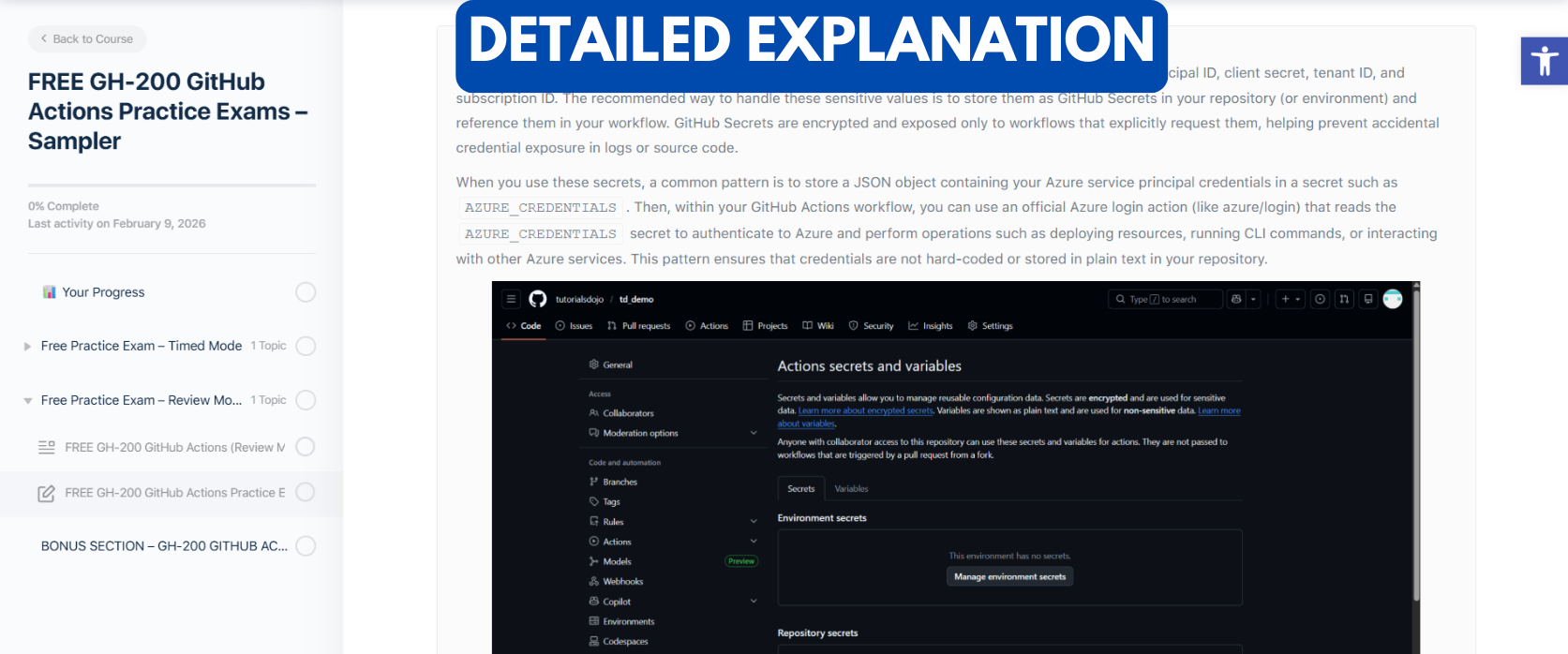 Each question reflects real-world DevOps and automation scenarios professionals encounter when implementing CI/CD with GitHub Actions. Every item includes detailed explanations to clarify the reasoning behind correct answers and help you avoid common workflow and configuration mistakes.