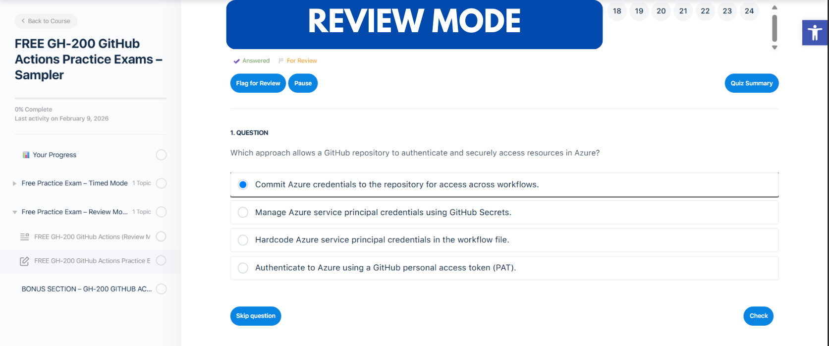 Start your certification journey with this FREE GH-200 GitHub Actions Practice Exam Sampler, designed to help you become familiar with the exam format and question types for the GitHub Actions certification. This sampler provides realistic, scenario-based questions aligned with the key domains from the official study guide for GH-200, including: