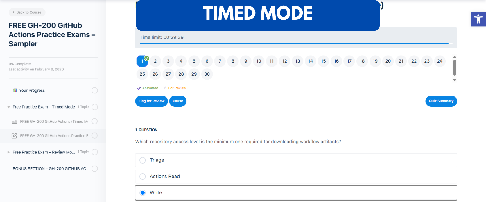 - TIMED MODE – Simulates the actual GH-200 exam experience under realistic time constraints, featuring 30 practical questions to test your understanding.