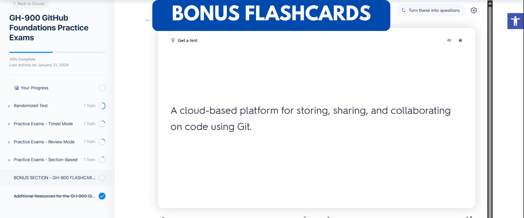 To maximize your success, combine these practice exams with the official GH-900 GitHub Foundations Study Guide and GitHub Learn documentation to build strong foundational skills and confidence with GitHub.