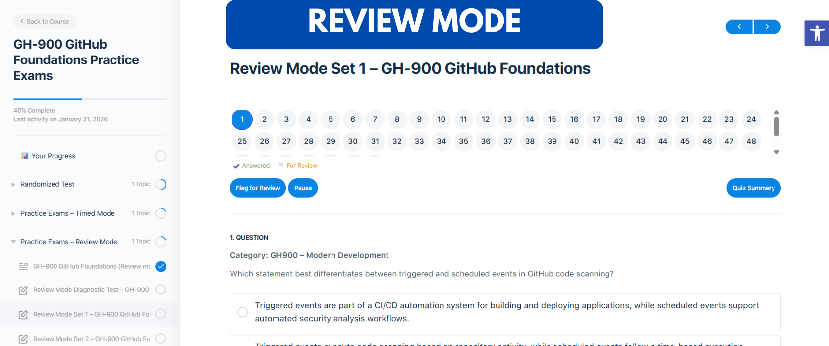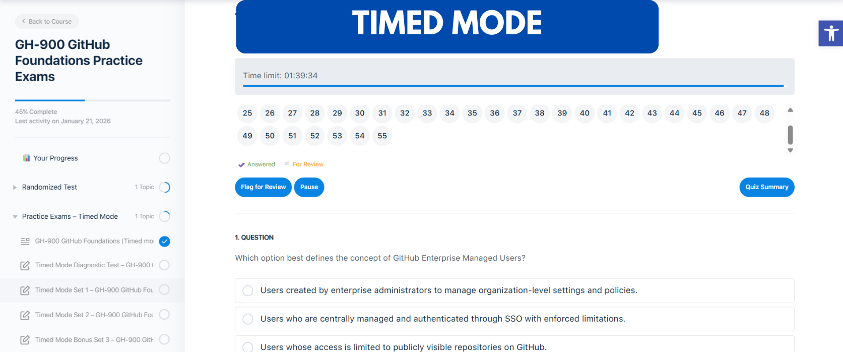 - TIMED MODE – Practice under official GH-900 exam timing to improve pacing and confidence.