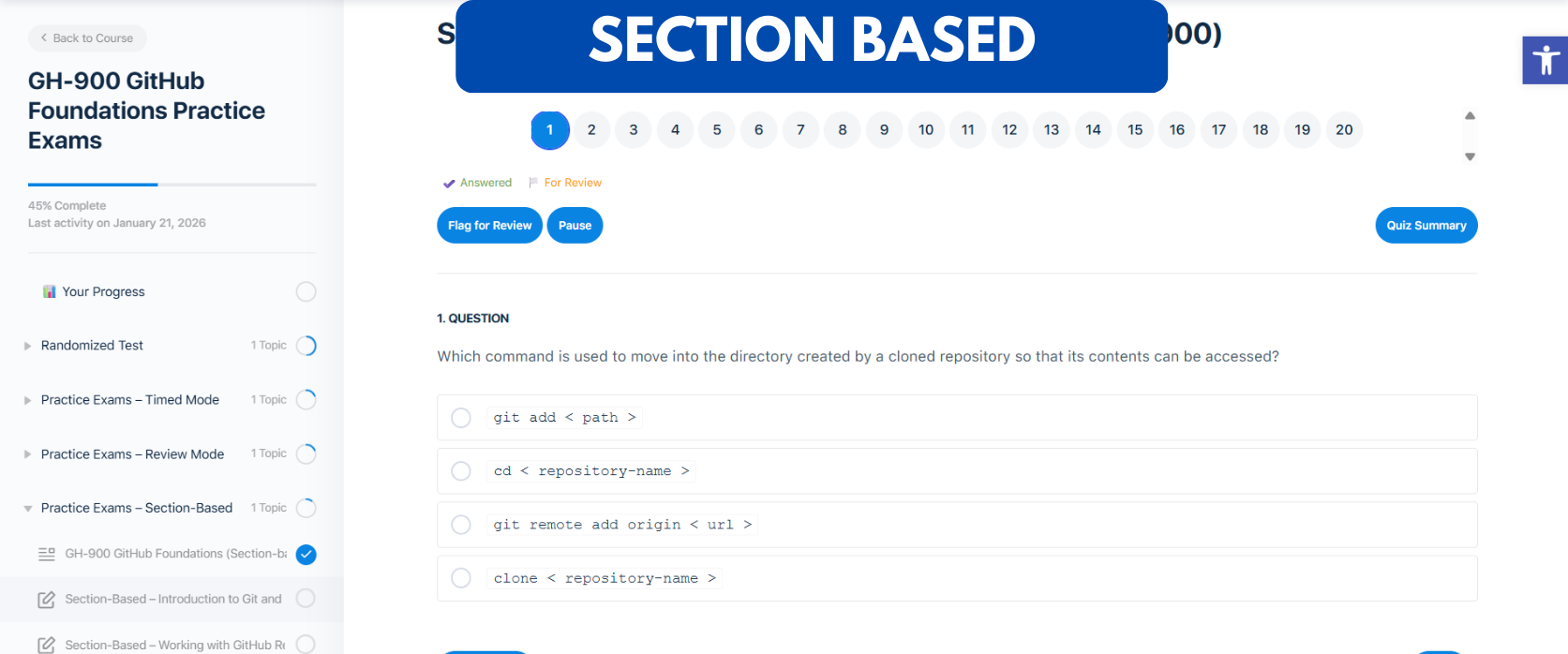 - SECTION-BASED TESTS – Focus on specific GH-900 exam domains, including: