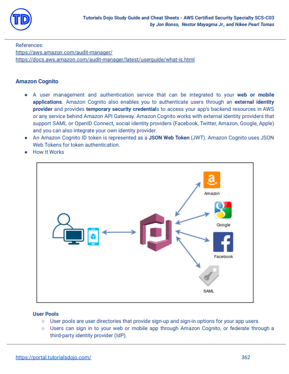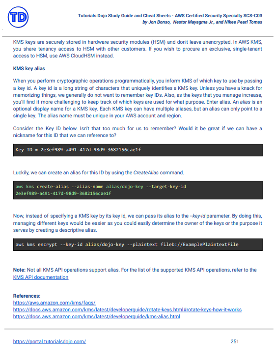 Our AWS Certified Security Specialty SCS-C03 study guide PDF eBook contains an overview of the AWS certification exam and what to expect in the actual test. A thorough discussion of each domain in the exam, as well as the relevant topics and concepts under those domains, are included. It also contains our study guide with exam-specific tips and recommended reading materials, an overview of the cheat sheets ONLY for the relevant AWS services, as well as a comparison of similar AWS services which can help you solve the tricky scenario questions in the actual test.